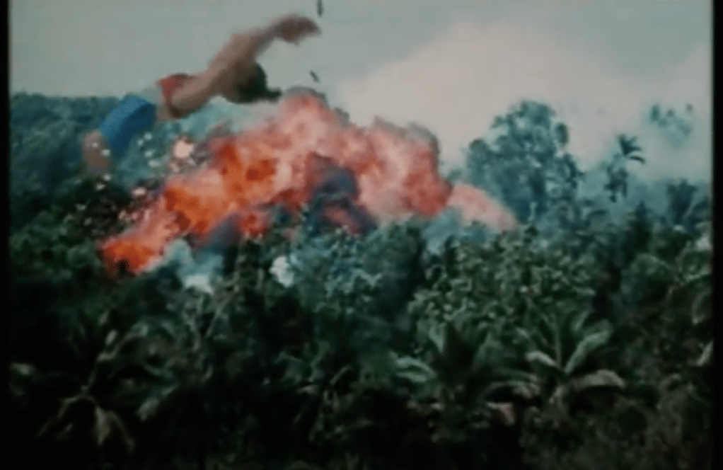 On the surface, viewers may see the music video as a creative and imaginative piece, however, when you dive into each scene and analyze the relationship, there is a pattern that the creators developed in relationship to the lyrics. The music video shows different scenes that relate back to Apollo 11, the Vietnam War, human rights, social phenomenon’s, global warming. Some examples of scenes and their representations are shown with a car driving around Saturn. These scenes of the car racing around Saturn, the Apollo 11 moon landing, and more, are presupposed progress of human discoveries in science and technology. The scenes relating to science and technology are a depiction of all the great milestones in the history of exploration, shedding light on our capabilities and discoveries. Another interesting theme in the music video related to the history of human war and the disregard that our generation has about it. The powerful scene of the girl doing backflips into a bomb refer to the Vietnam War. However, the purpose was not to portray war, but to show what arose after war; hippy culture and anti-war thoughts. We continue to move up and up as a society however there are still issues that we deal with as a society. He illustrates the social phenomenon and human rights through the juxtaposition of people and environments. A notable scene that touches on human rights is when an African American is jumping over the Washington Monument, signifying the step towards African American rights. There is also a scene where a car is speeding over the New York skyline, showing the social phenomenon of overcrowding and traffic in densely populated areas. There is a representation of global warming in another scene where a McDonalds cup is blocking the entire water flow of a river. This touches on pollution around the world, specifically towards our marine environment.